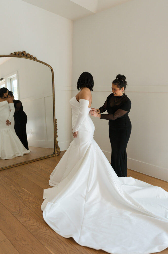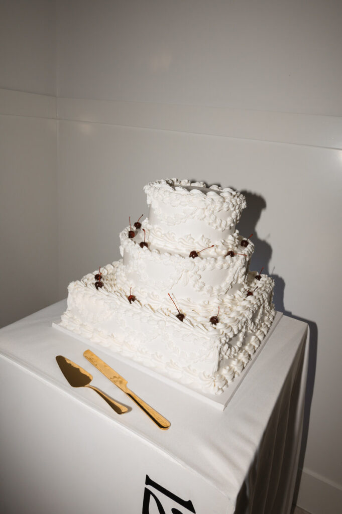 The venue’s clean architecture and neutral tones paired perfectly with the couple’s black-and-white color palette. It was the kind of setting that let their style shine—elevated but effortless.