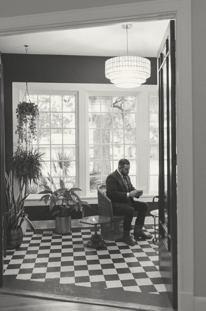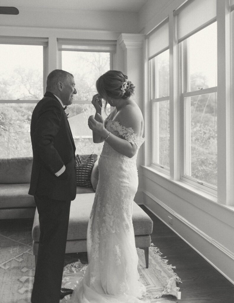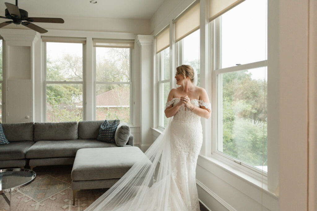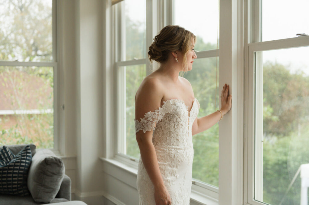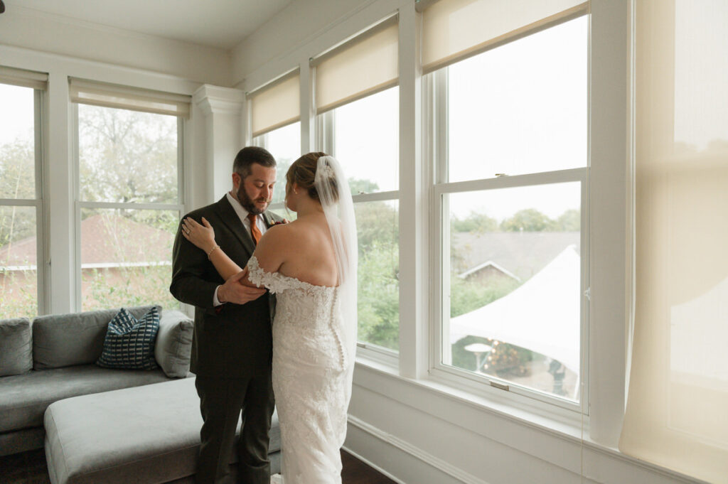 The day began at The Caroline in Lockhart, where both the getting ready and ceremony took place. The skies were gray, the light was soft, and everything about the mood matched the tone of the day — calm, grounded, and full of anticipation.