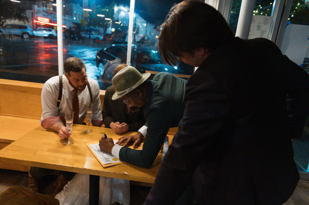 The couple — who own a bar in East Austin — signed their marriage license and shared a toast with a rare liquor gifted by their officiant friend, brought from overseas. It was private. Sacred. And full of weight.