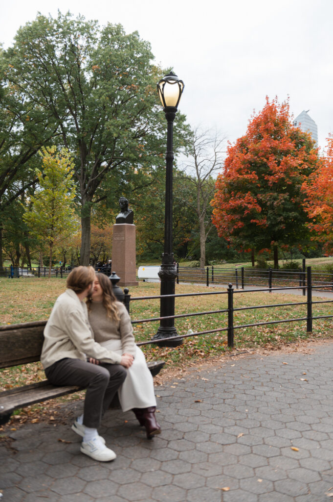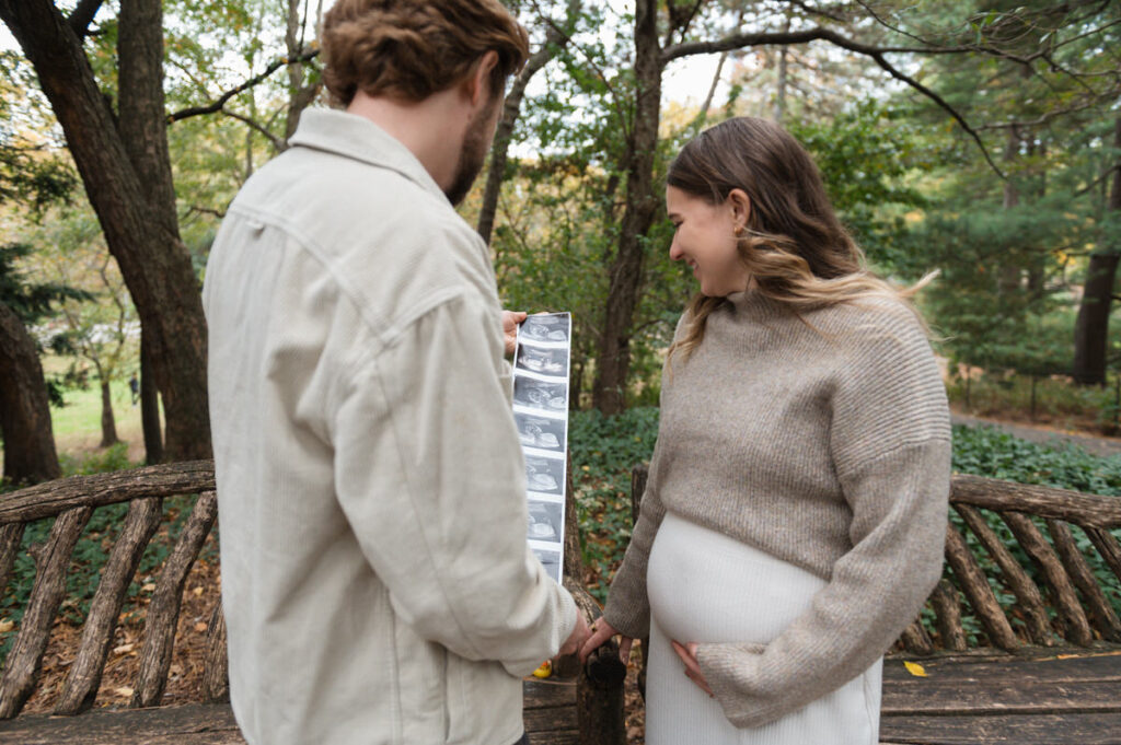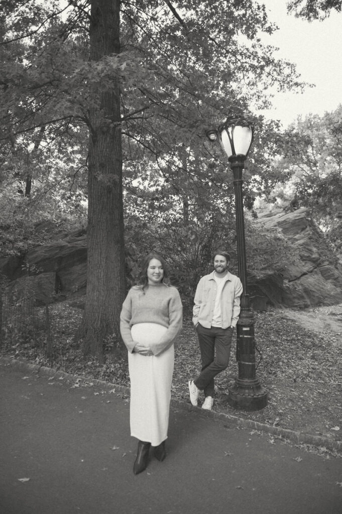 On a crisp October Saturday, in the middle of Central Park, we made space for something new. This Central Park maternity announcement session happened during peak fall — soft light, neutral layers, and a quiet new beginning in the middle of the city.