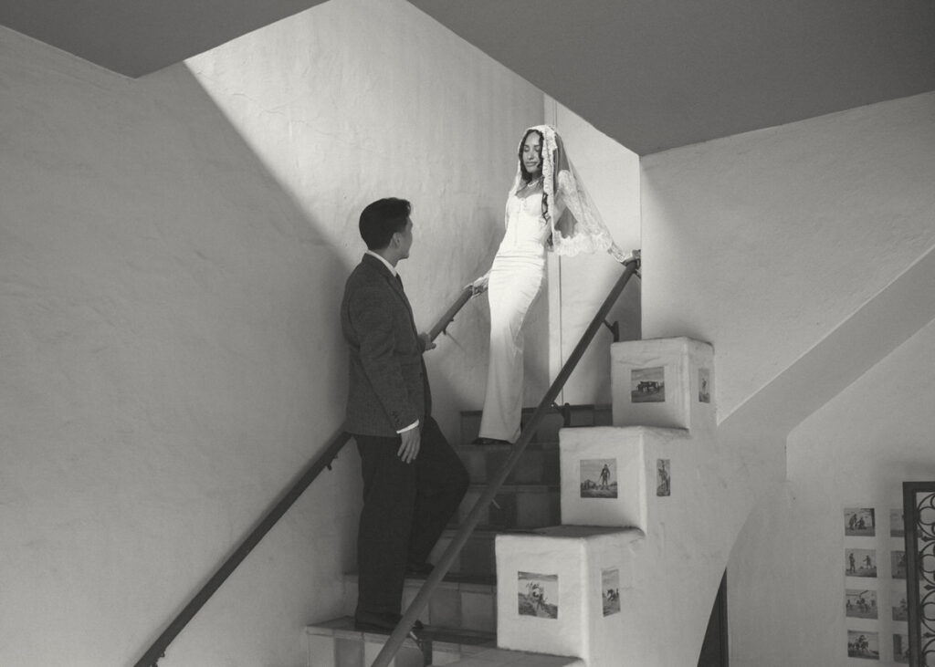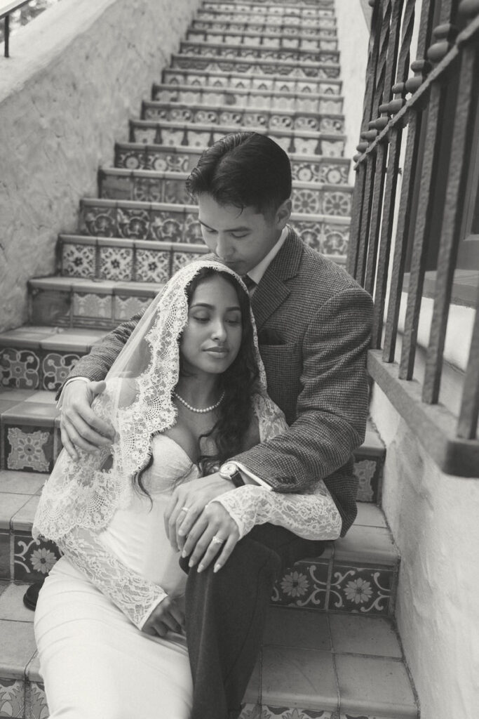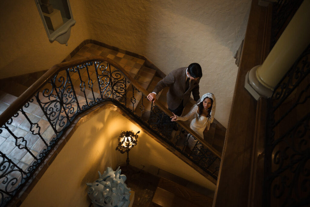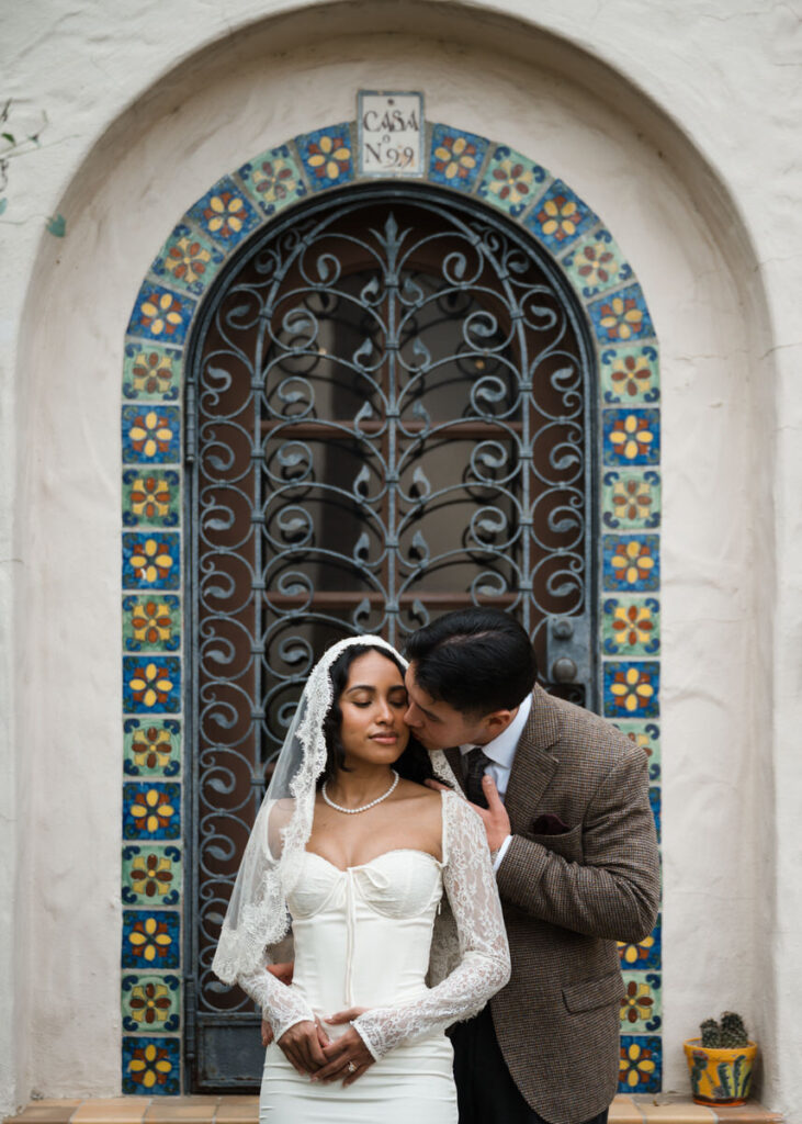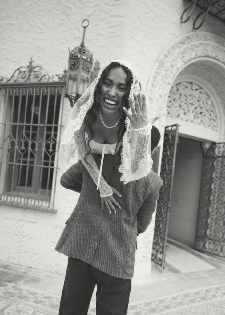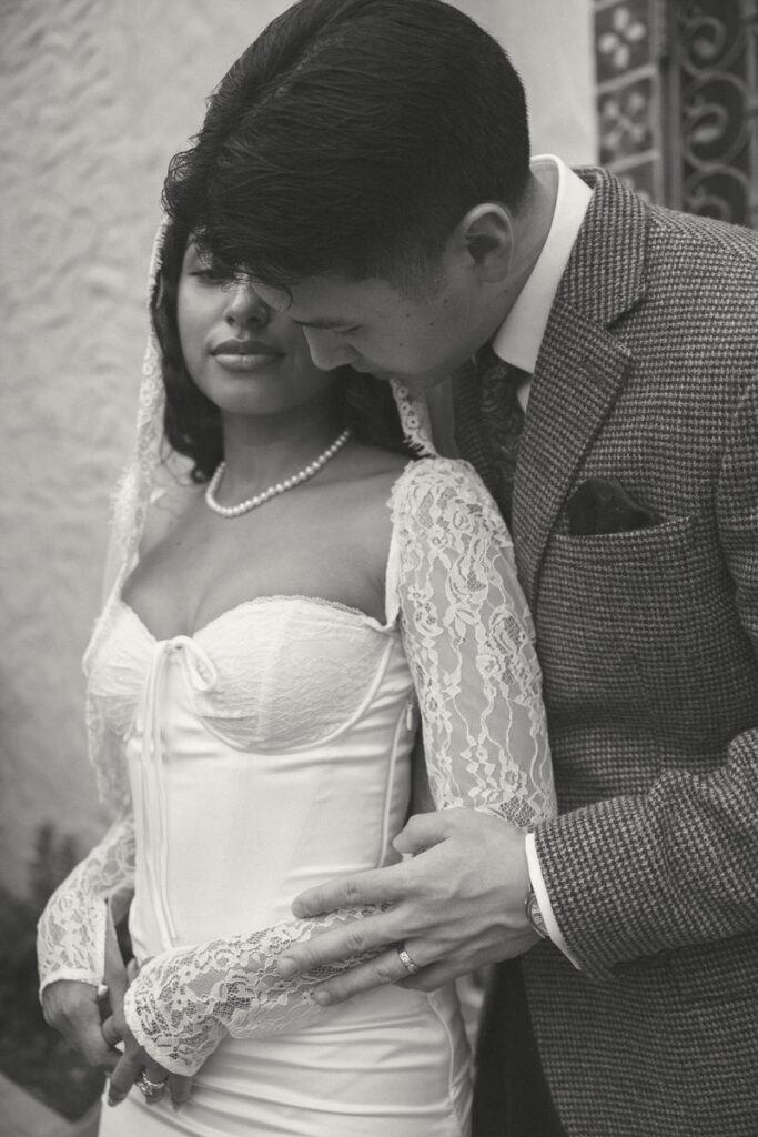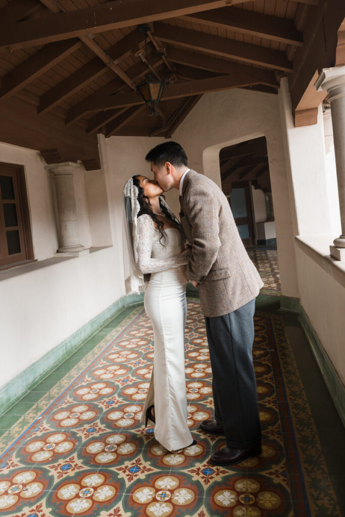 They chose to elope in front of the museum — surrounded by arches, greenery and grandeur.