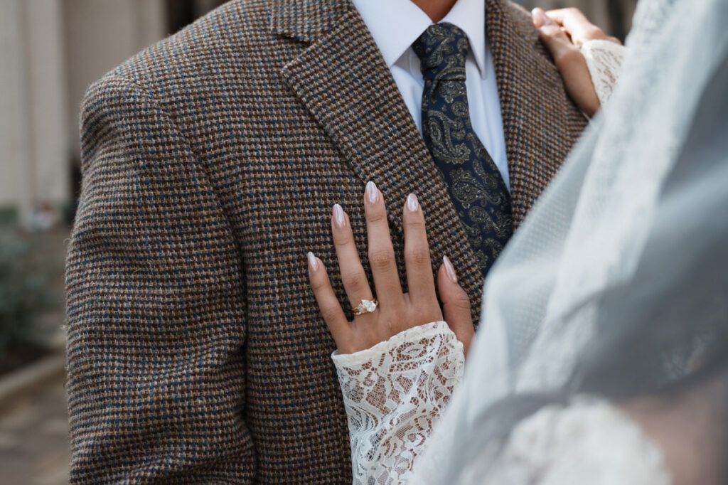 One detail that stood out? Both wedding rings featured the same stones — their birthstones, shared between the two bands. It was subtle, but incredibly meaningful. The kind of thing only they needed to understand.