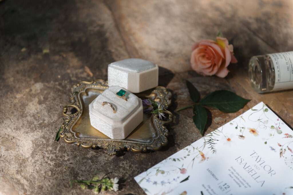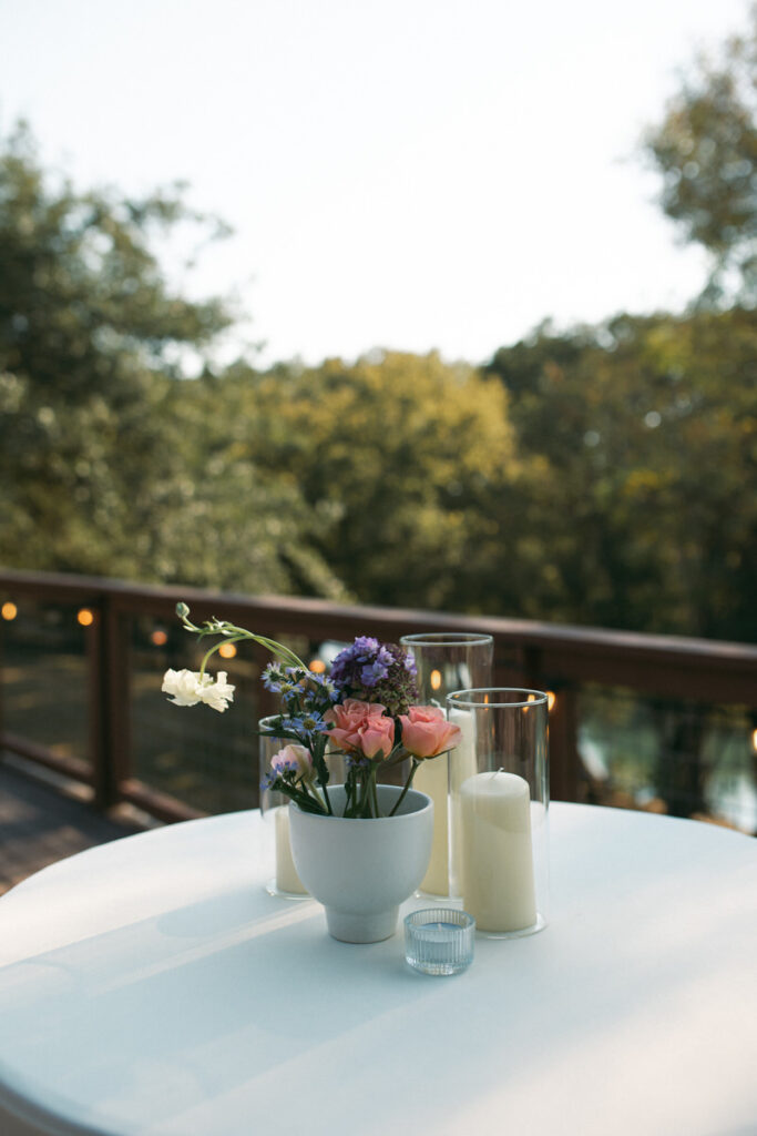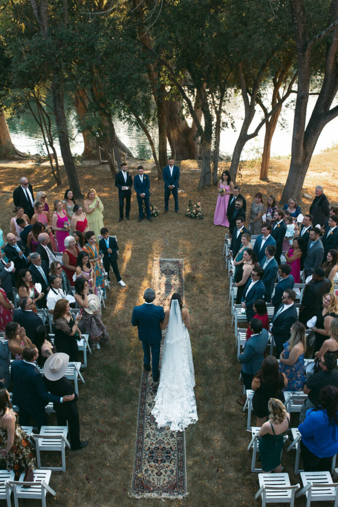 No need for over-the-top arches or big floral installations here — the view did all the talking. Surrounded by tall trees and soft light reflecting off the water, Bella & Taylor’s ceremony felt deeply intimate and rooted in something bigger.