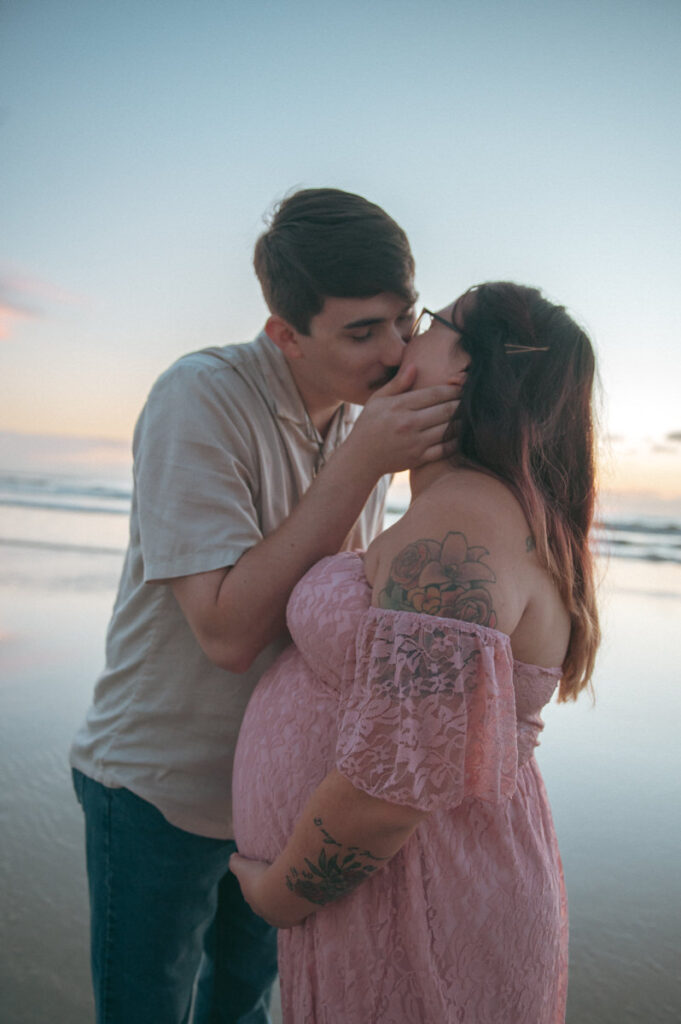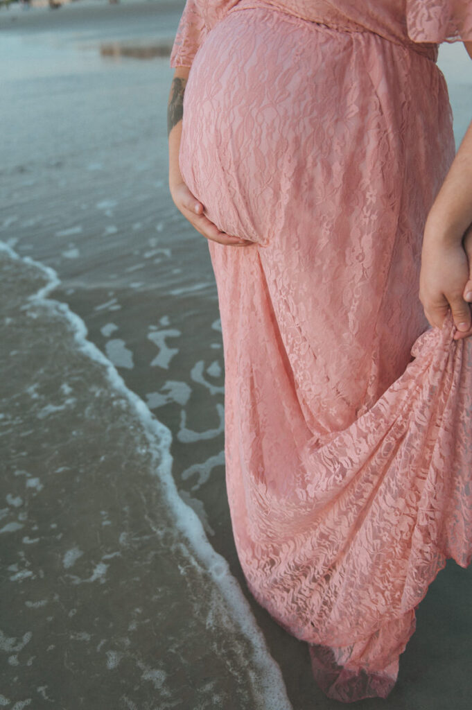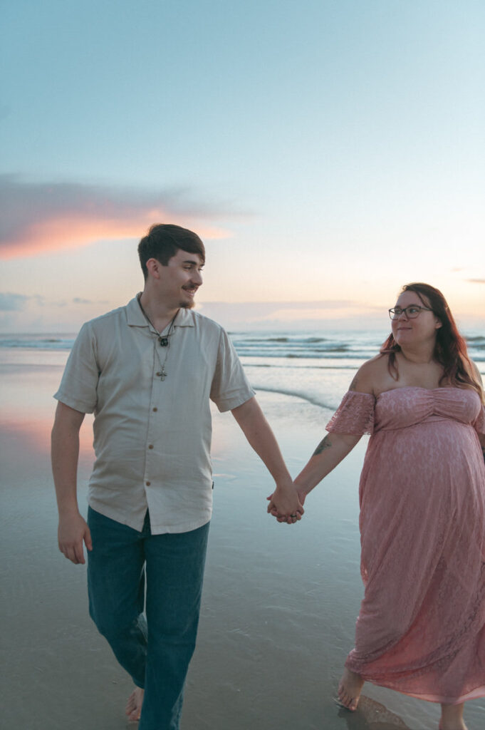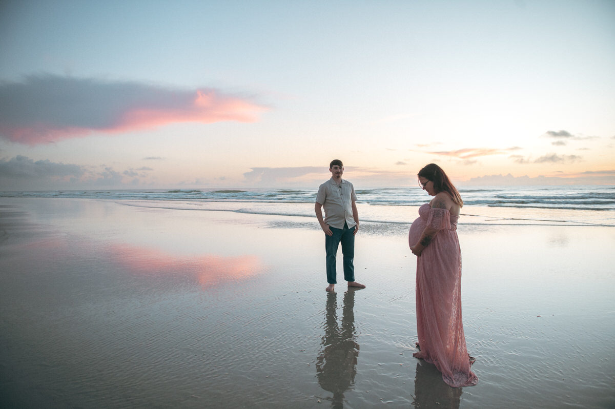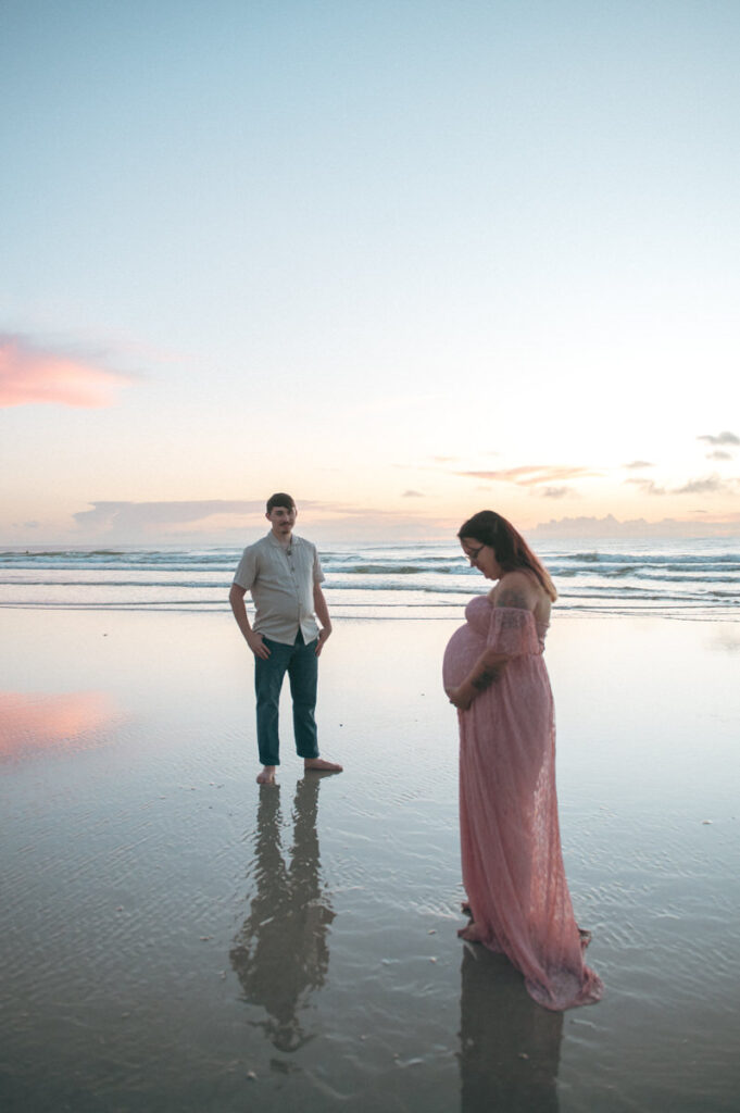 We met just before the sun rose in New Smyrna Beach, the sky still soft and blue. It was quiet. No rush. Just sand, still air, and a beautiful background for maternity photos.