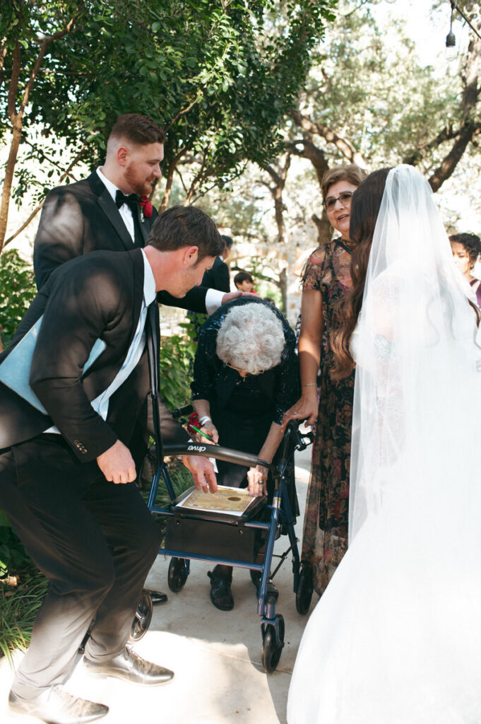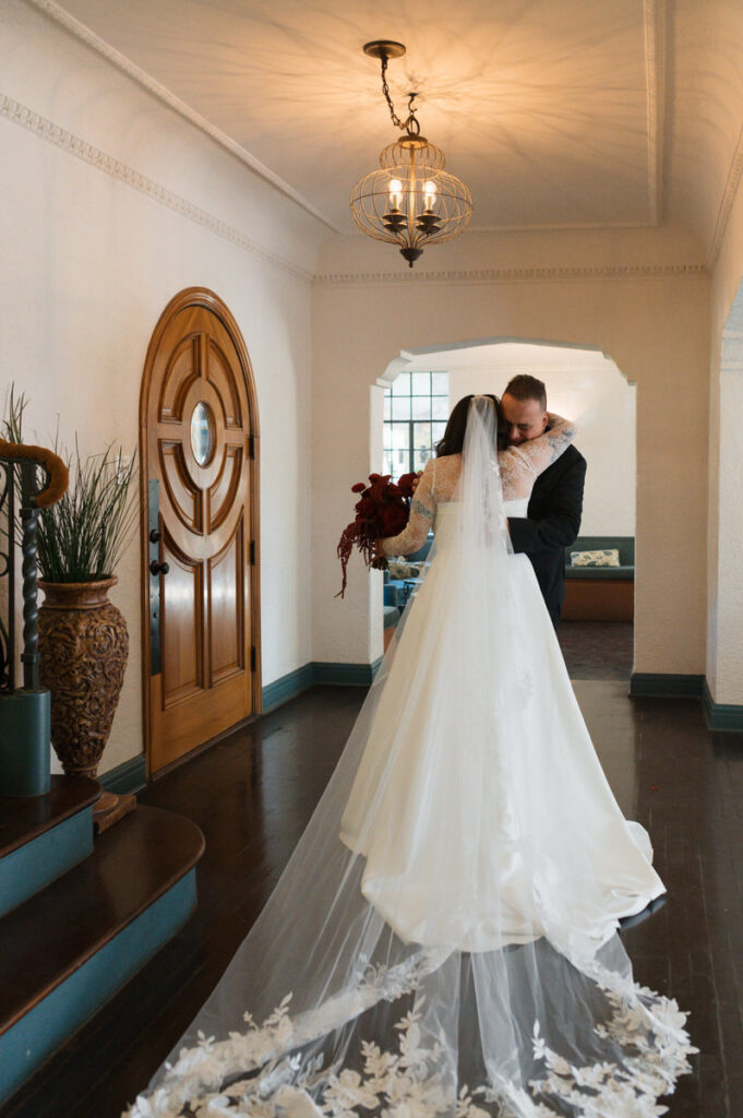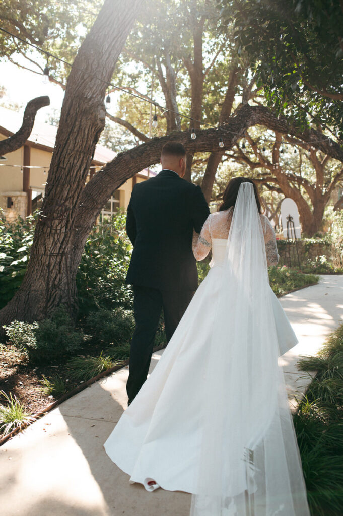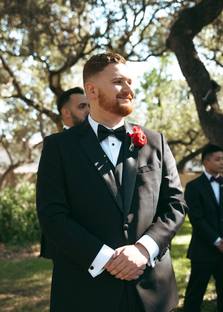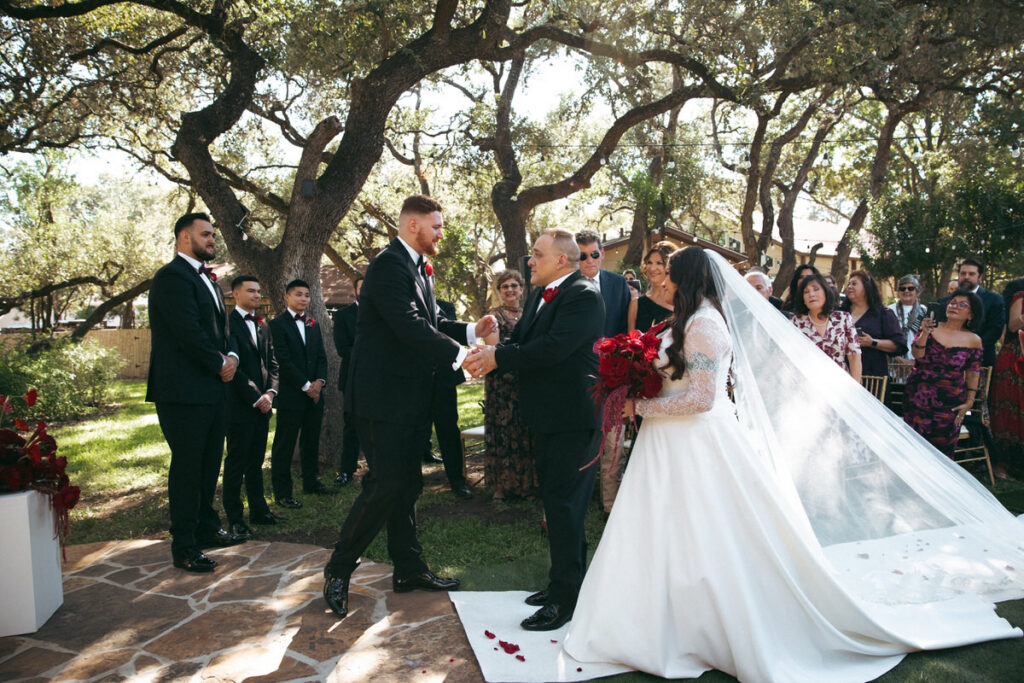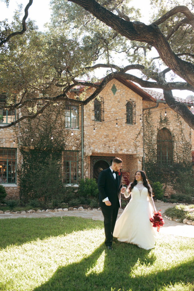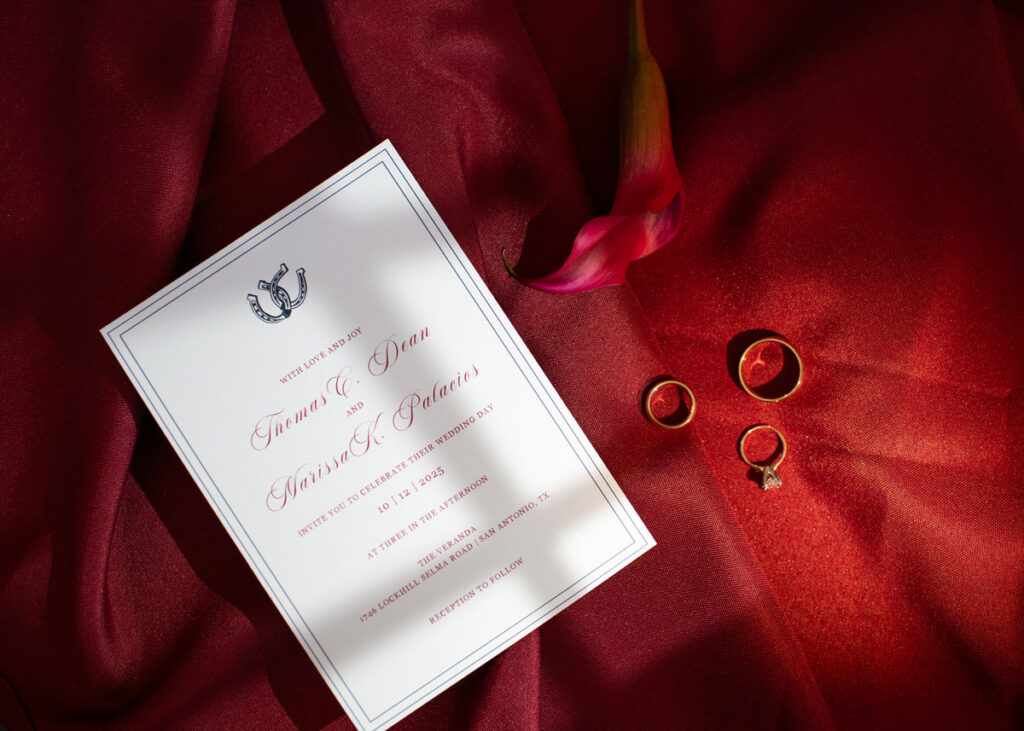 October in San Antonio brings steady light and cooler evenings (sometimes). This San Antonio wedding at The Veranda used that shift in season well. The venue’s brick walls, Spanish-style tile, and tree-lined entrance already carry character. The couple built on that foundation with layered shades of red throughout the day.